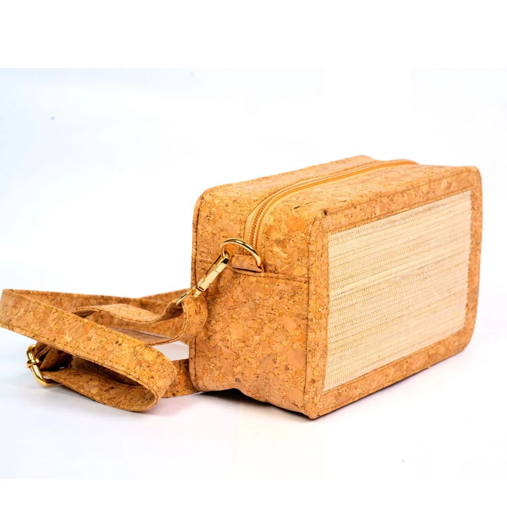 Crossbody kabelka Dimity Sling je vyrobena z přírodního korku a banánového vlákna. Tento udržitelný kousek spojuje praktičnost, moderní design a šetrnost k přírodě.