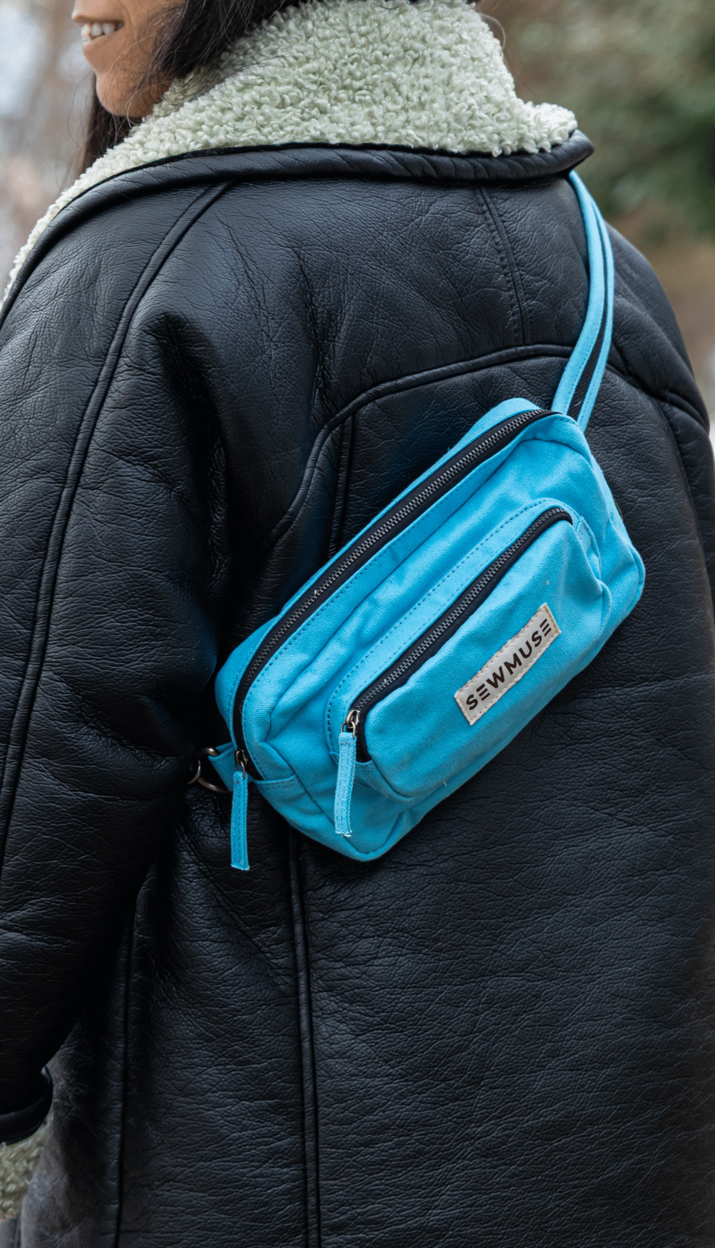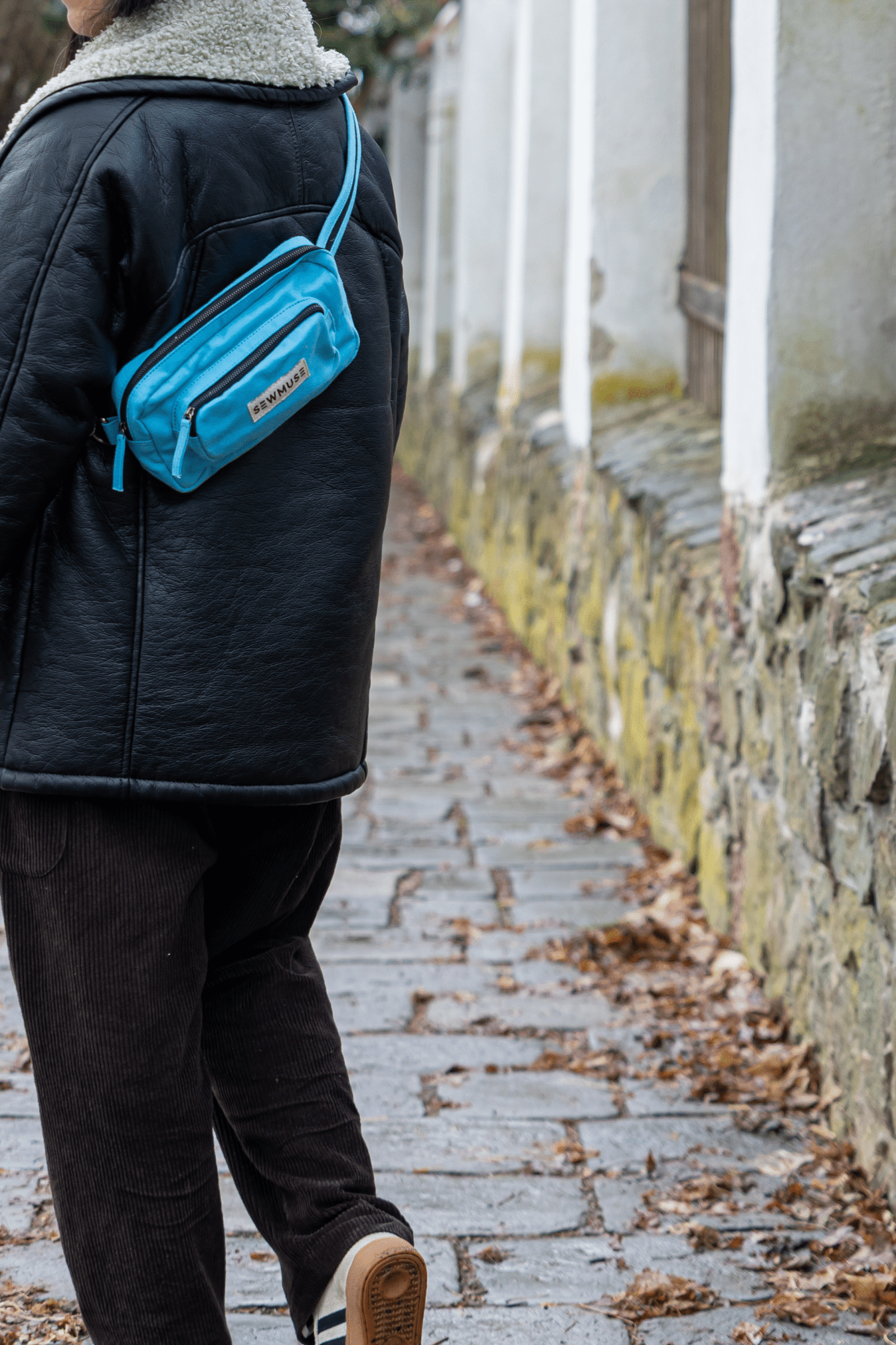 Ledvinka Athen Sky Blue je vyrobena z 100% bavlněného plátna. Tento udržitelný kousek spojuje praktičnost, moderní design a šetrnost k přírodě. Modrá barva dodává univerzální a elegantní styl, který snadno zkombinujete s každodenním outfitem – od práce až po volný čas. Ručně šitá ledvinka podporuje férovou výrobu a ekologickou módu.