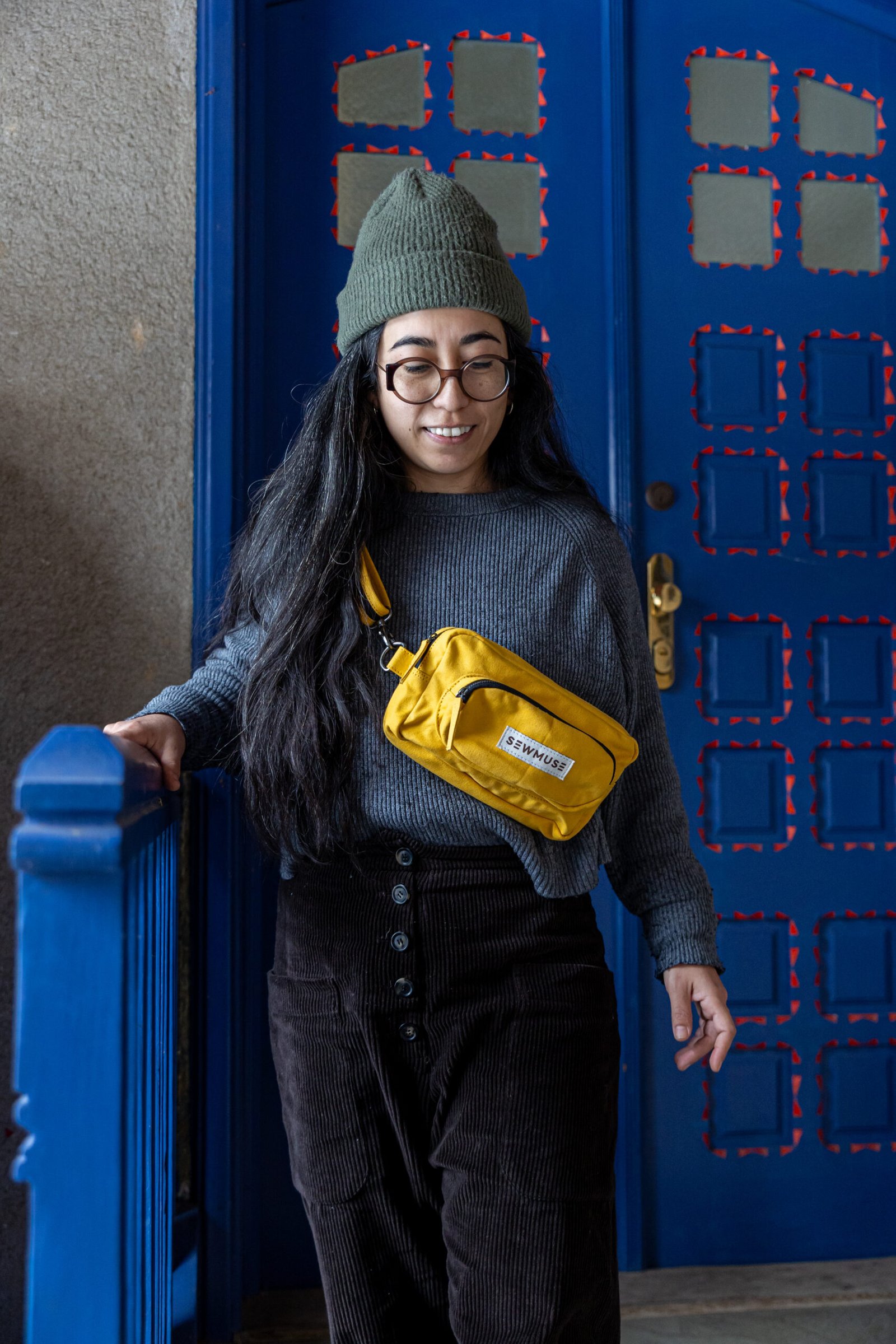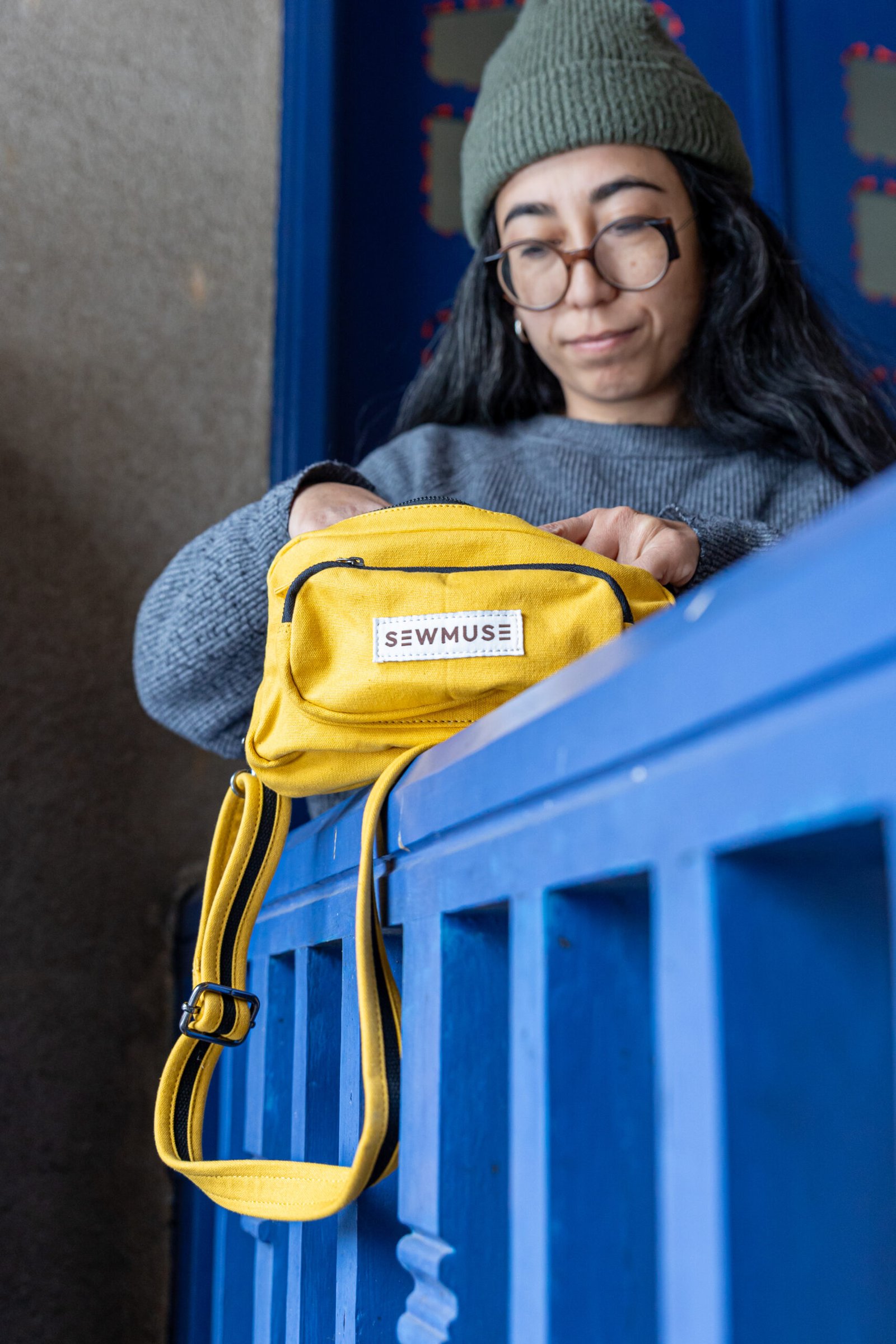 Ledvinka Athen Daffodil Yellow je vyrobena z 100% bavlněného plátna. Tento udržitelný kousek spojuje praktičnost, moderní design a šetrnost k přírodě. Žlutá barva dodává jedinečný styl pro každodenní outfit – od práce až po volný čas. Ručně šitá ledvinka podporuje férovou výrobu a ekologickou módu. – SewMuse.cz je symbolem udržitelné módy Česko.